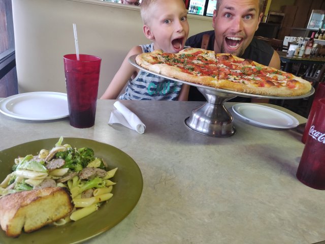 Na een uurtje gaan we ff douchen en lopen we naar de pizzeria aan de overkant waar we lekker eten. Pizza voor mij en Travis en een pasta voor Marloes.